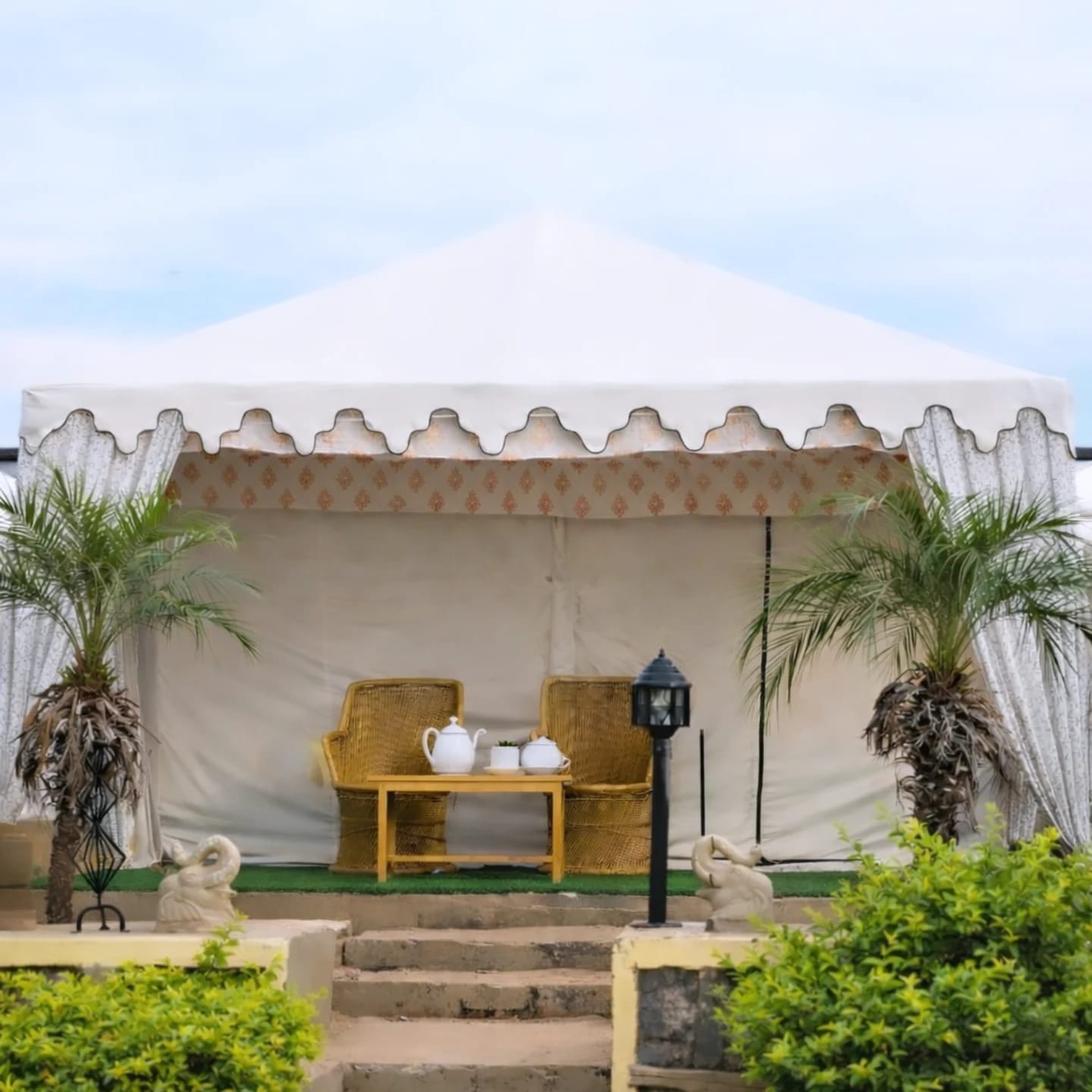 Enjoy luxury Swiss tent stay with attached washroom, thrilling camel and jeep safari, traditional Kalbeliya dance, bonfire night and authentic Rajasthani dinner under the open sky.